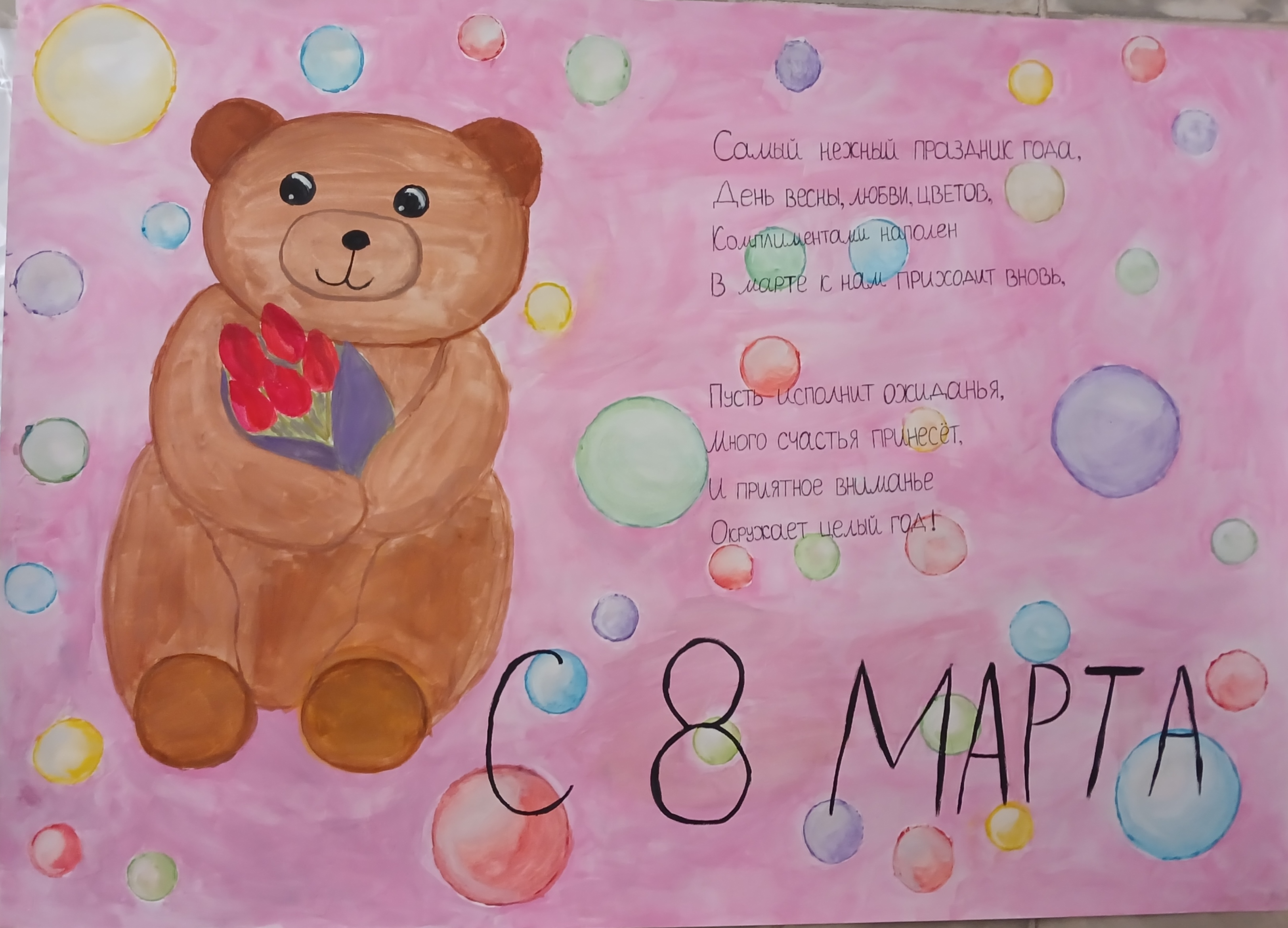 На страницах книги, обучающиеся сделали аппликацию, написали слова благодарности. Ребята поздравили женщин с праздником и вручили изготовленные своими руками «Книжки тёплых слов» в качестве подарка.