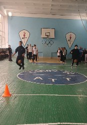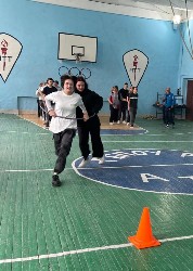 Далее программу продолжили подвижные эстафеты, которые провел преподаватель физкультуры Сергей Васильевич Русаков. Команды соревновались в ловкости, координации и скорости, поддерживая друг друга азартными кричалками.