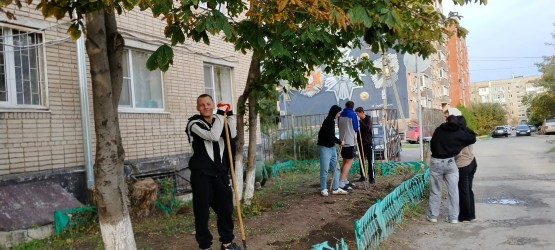 Все дружно с энтузиазмом взялись за работу: убирали листву, подметали дорожки, приводили в порядок цветочные клумбы и высаживали цветы.