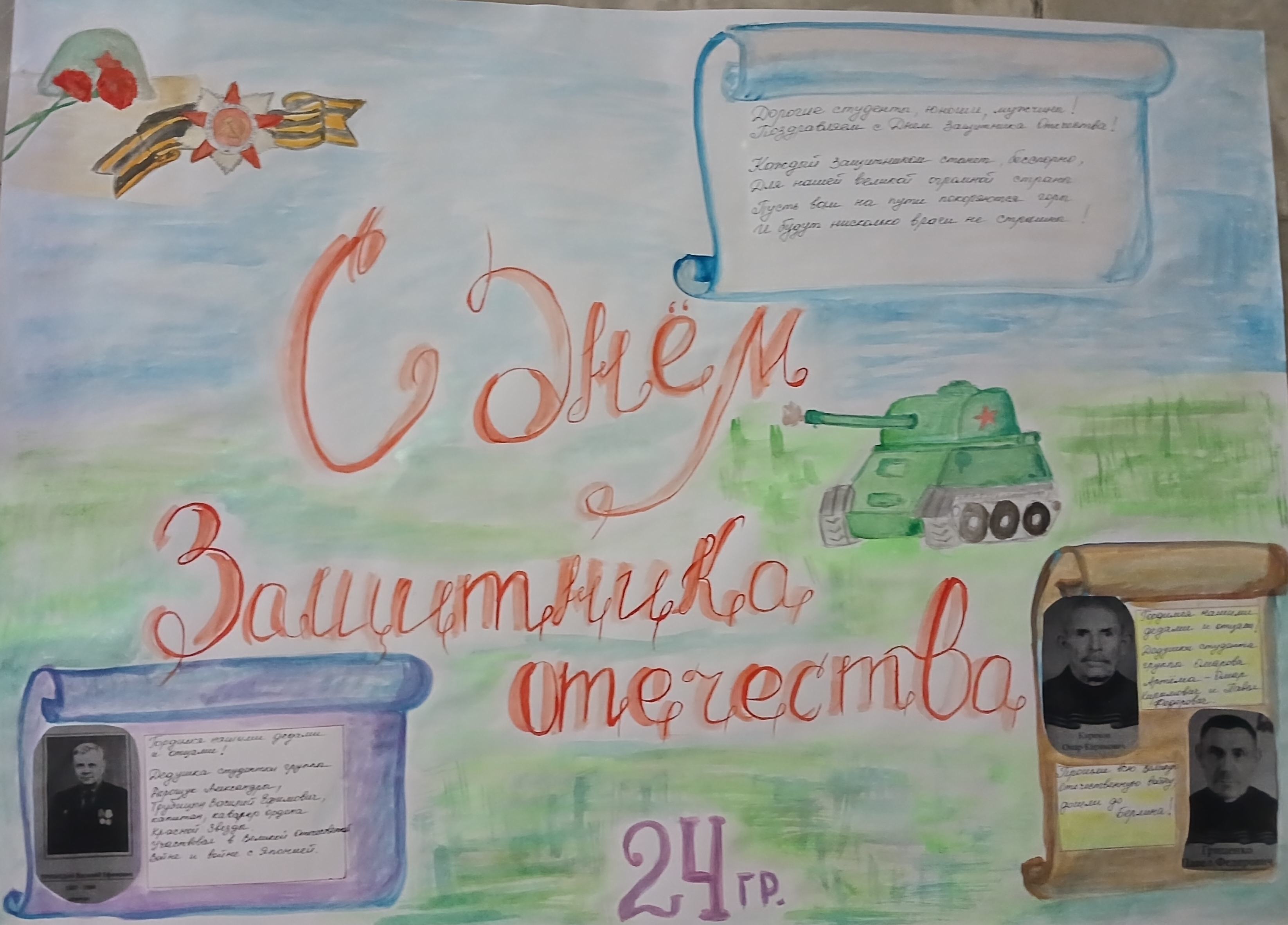 В рамках месячника военно - патриотического воспитания в Аксайском технологическом техникуму прошел конкурс стенгазет, боевых листков и плакатов посвящённых Дню защитника Отечества, в котором студенческие группы приняли участие и подошли к этому с теплом и уважением.