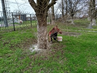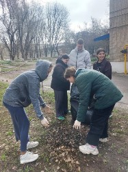 Дружно разобрав рабочий инвентарь: мётлы, грабли, вёдра и кисти они провели работу по очистке территории: собрали мусор и сухие ветки, убрали опавшую прошлогоднюю листву, подмели дорожки, очистили и побелили бордюры и деревья.