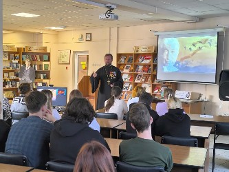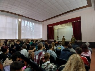 Сегодня 1 октября в ГБПОУ РО «Аксайский технологический техникум» состоялась встреча обучающихся с ветераном пограничной службы Александром Геннадьевичем Ефремовым и участником боевых действий в зоне специальной военной операции Евгением Викторовичем Немковым.