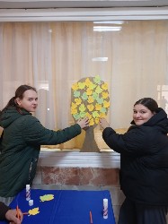 Обучающиеся писали пожелания педагогам с праздником на листочке и оставляли их на Дереве пожеланий, после акции преподаватели прочли самые искренние пожелания адресованные им.