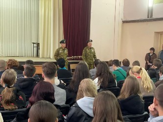 Обучающимся рассказали о быте в условиях спецоперации, вооружении наших солдат, ведении боевых действий.
