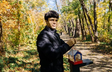 22 октября волонтеры Аксайского технологического техникума совместно со специалистами Отдела по ФКСТ и Работе с Молодёжью Администрации Аксайского района развесили в Мухиной балке кормушкидля птиц и белок.