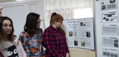 16 марта 2021 года в Аксайском технологическом техникуме по плану празнования 125 – летия со дня рождения выдающегося учёного Семёнова Н.Н., редколегия 18-й группы /почтовая связь/ кл. руководитель Гришина Татьяна Владимировна оформили информационный стенд: «Н.Н. Семёнов – физик, ставший химиком, учёный получивший Нобелевскую премию в области химии». Обучающиеся выбрали интересные фотографии и статьи, в которых Семёнов раскрыт как творческая личность с бьющей через край энергией, энтузиастом науки, не забывавшим про отдых. Любил охотиться и работать в саду, увлекался архитектурой и как о нём вспоминает его внук А.Ю. Семёнов, доктор биологических наук: «Дед любил компанию, которая собиралась к вечеру за большим столом, не обладая хорошим слухом, дед, тем не менее, любил петь» Много интересного и познавательного узнали о жизни академика Николая Семёнова.