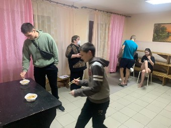 Обучающие разделились на две команды, игра была очень увлекательная и весёлая. Смысл игры: накормить друга попкорном, но донести его китайскими палочками стараясь не уронить. Победили обучающиеся первого курса и были награждены сладкими призами.