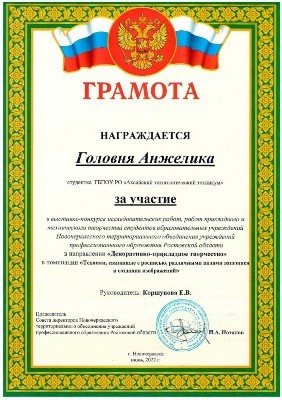 Обучающаяся Аксайского технологического техникума Власенко Татьяна (преподаватель Тимофеева В.И.) участвовавшая в территориальной олимпиаде по информатике и информационным технологиям в номинации: «Пользователи ПК (непрофессионалы)» награждена грамотой за II место, а преподаватель Тимофеева Виктория Ивановна грамотой за подготовку призёра.