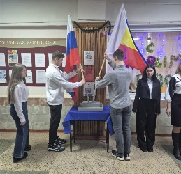 Каждый понедельник в ГБПОУ РО «Аксайский технологический техникум» начинается с церемонии поднятия государственного флага РФ и исполнения гимна РФ.