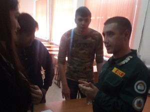 25 апреля 2018г в рамках Всероссийского урока ОБЖ председатель ВДПО Аксайского р-она Ростовской области Резникова С.Ю. и пожарный 44ПСЧ г.Аксая Семенцов В.В. провели с обучающимися Аксайского технологического техникума занятие по Основам безопасности жизнедеятельности, показали учебный фильм по ППБ «Противопожарная безопасность в учреждении», рассказали и показали о первичных средствах пожаротушения, огнетушителях, показали «Капюшон Феникс». В мероприятии приняло более 100 обучающихся.